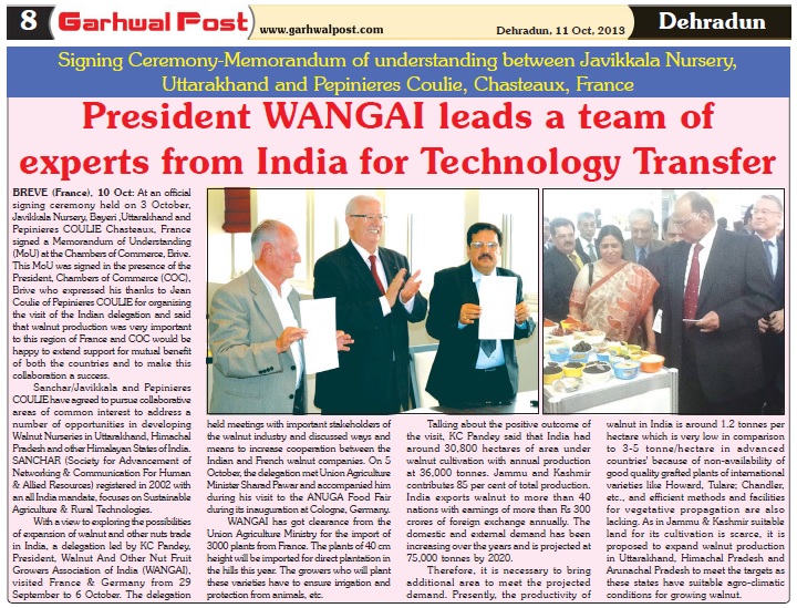 Chief Minister, Shri Vijay Bahuguna supports promotion of walnut and other nuts in Himalayan States.